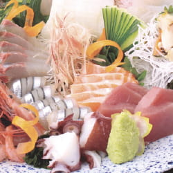 長崎近海で水揚げされた旬の魚を刺し盛りはもちろん、魚串や創作料理でご提供いたします。